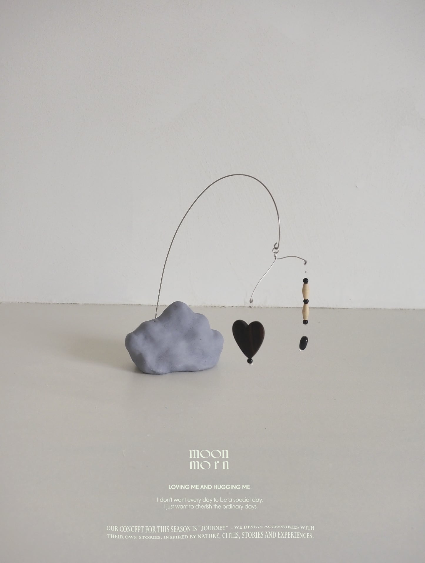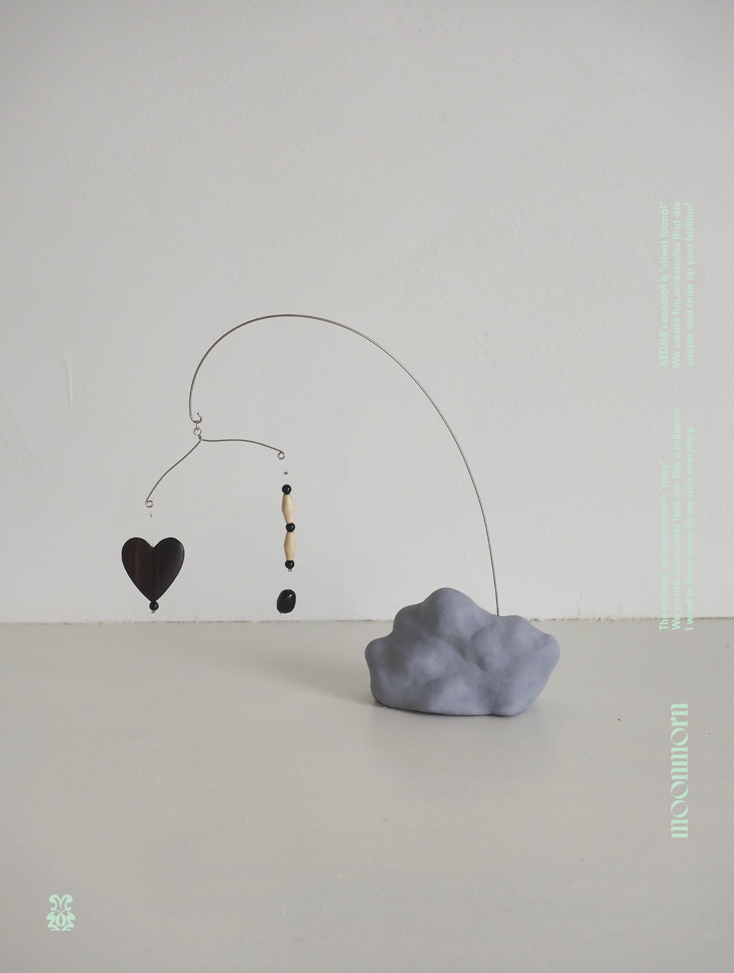 jesmonite製の”うにうに”には穴が空いており、そこに針金を刺してモビールを組み立てていただく卓上のモビールです。