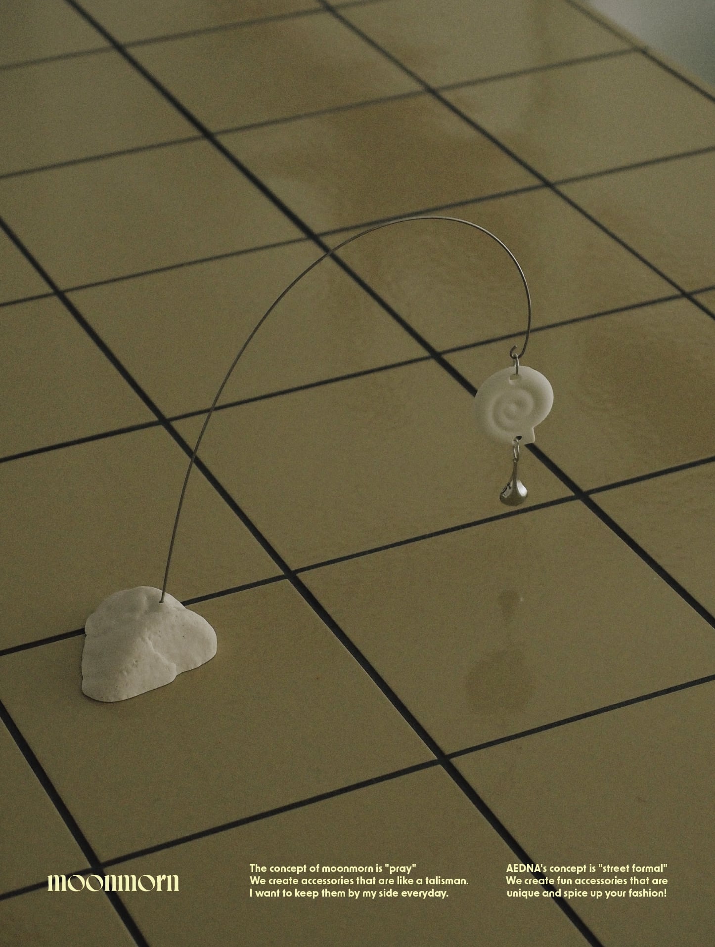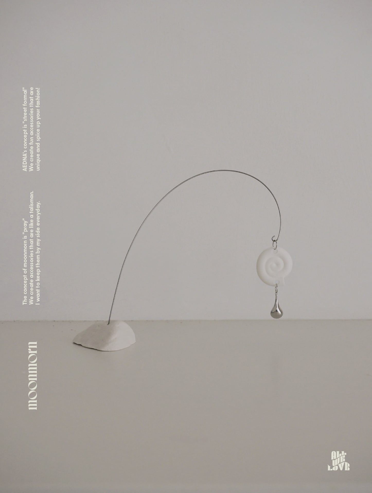石には穴が空いており、そこに針金を刺してモビールを組み立てていただく卓上のモビールです。
