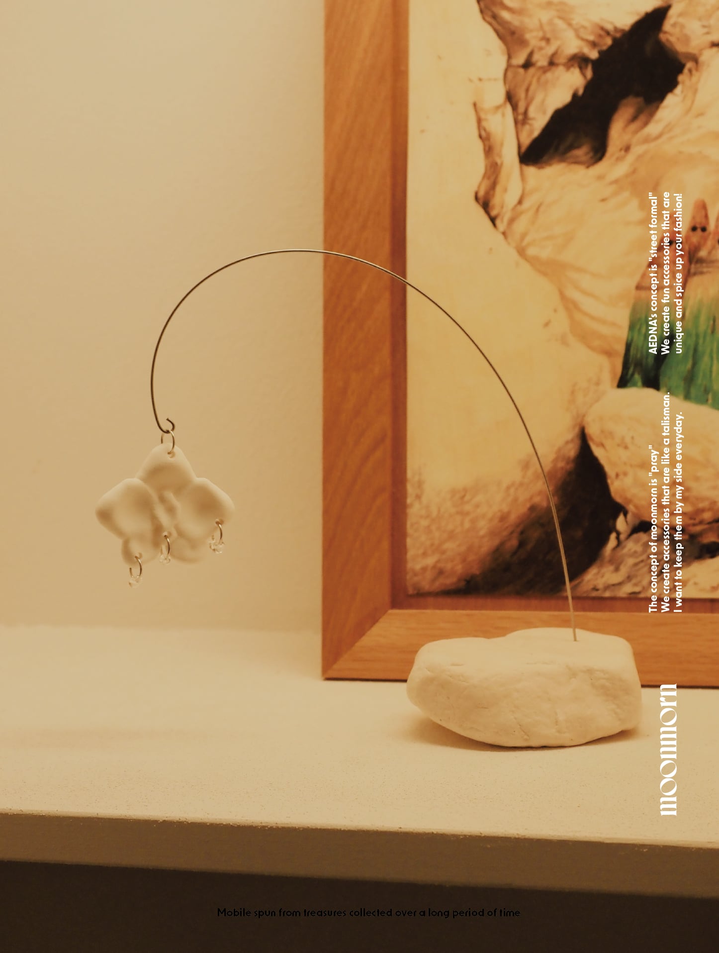 石には穴が空いており、そこに針金を刺してモビールを組み立てていただく卓上のモビールです。